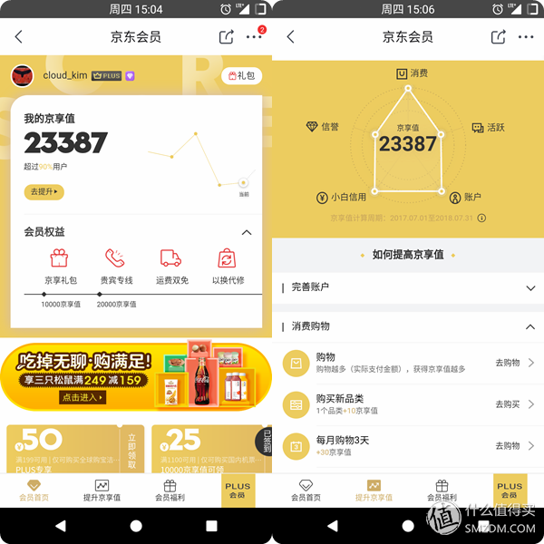 至此,京东商城包含普通会员与付费会员两大体系,即京享值会员与PLUS会员,它们之间又是怎样暧昧的关系呢?