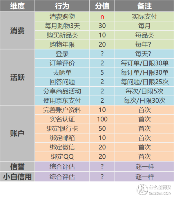 然而,京东官方并未公布京享值的完整算法,只是列出提升分值的主要行为,Kim较瘦制表如下。