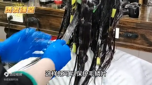 ·软化到位后一定要用水溶性蛋白反复浸泡两次,降低残留的碱性成分,填充蛋白,让头发恢复硬度,这样烫出来的头发才有弹性。