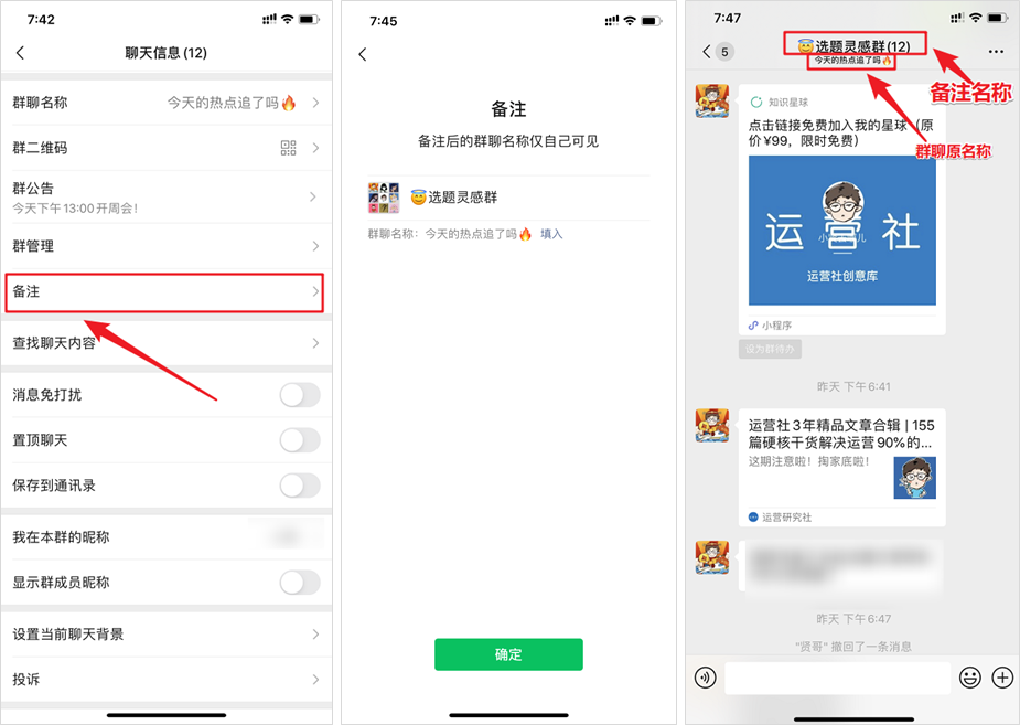 2)群聊名称可以改备注,方便我们区分不同类型的社群;