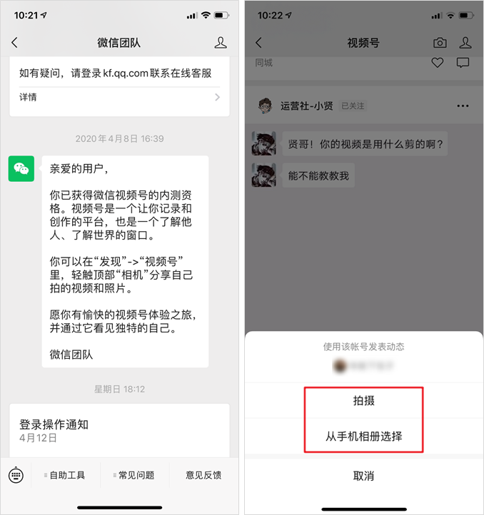 第三种用户获得内测资格,可以注册视频号发短视频了。