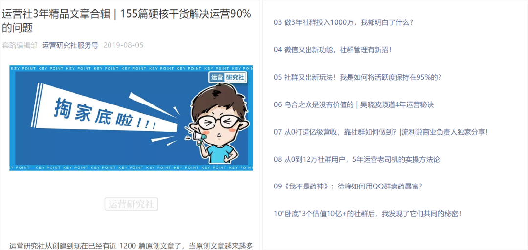 4)公众号可以把内容做成专栏,一方面可以用户检索,另一方面还可以考虑做知识付费。