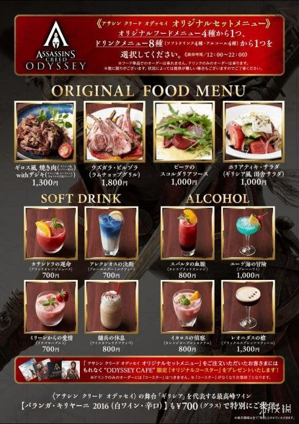 这样子的主题咖啡馆在日本还是蛮受欢迎的,它也会在9月29日至10月8日一直保留刺客奥德赛主题,并推出相应的食品,它们的价格在1000~1800日元(约60~110元人民币),还有一些标价800~1300日元的鸡尾酒饮料。所有来此用餐的客户都可获得一些收藏品。