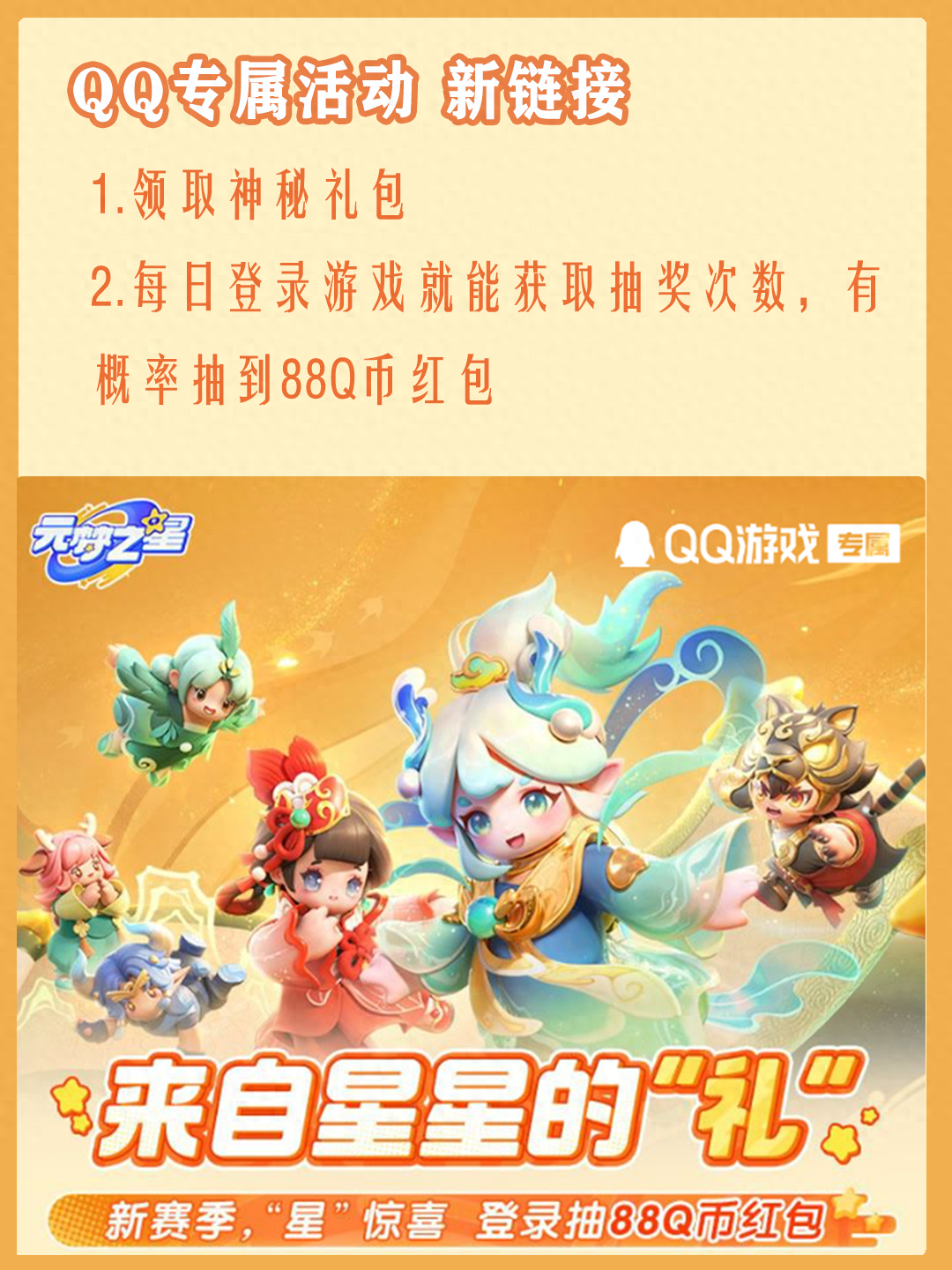 新赛季星惊喜,登录游戏即可领取【神秘礼包】、每日登录游戏获取抓娃娃次数,通过抓娃娃活动概率获得【88Q币红包】等诸多奖励!