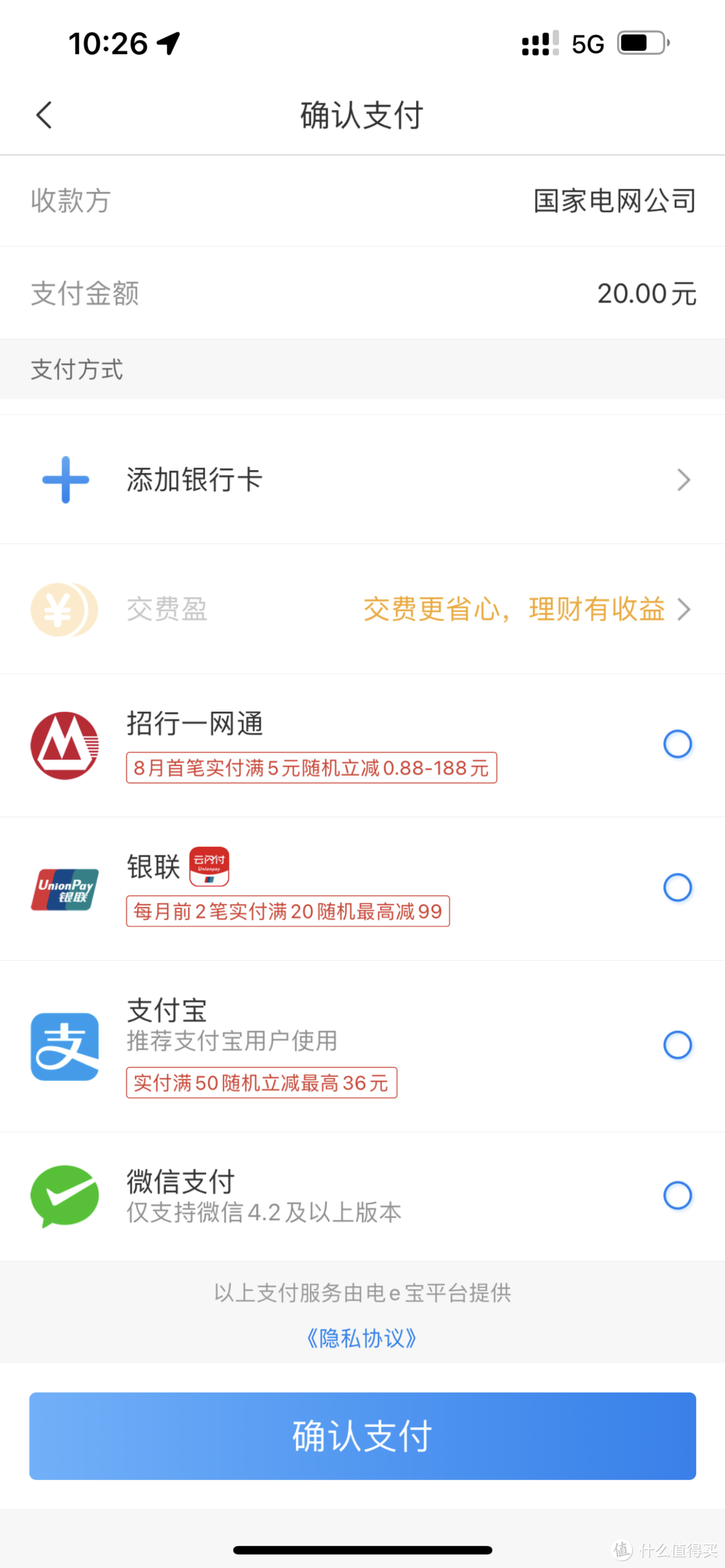 每周二、周六在微信的生活缴费里缴费满10元选择用云闪付付款能享受10-2的优惠,相当于8折。另外平时偶尔也会有随机立减的活动,大家缴费时可以关注一下。