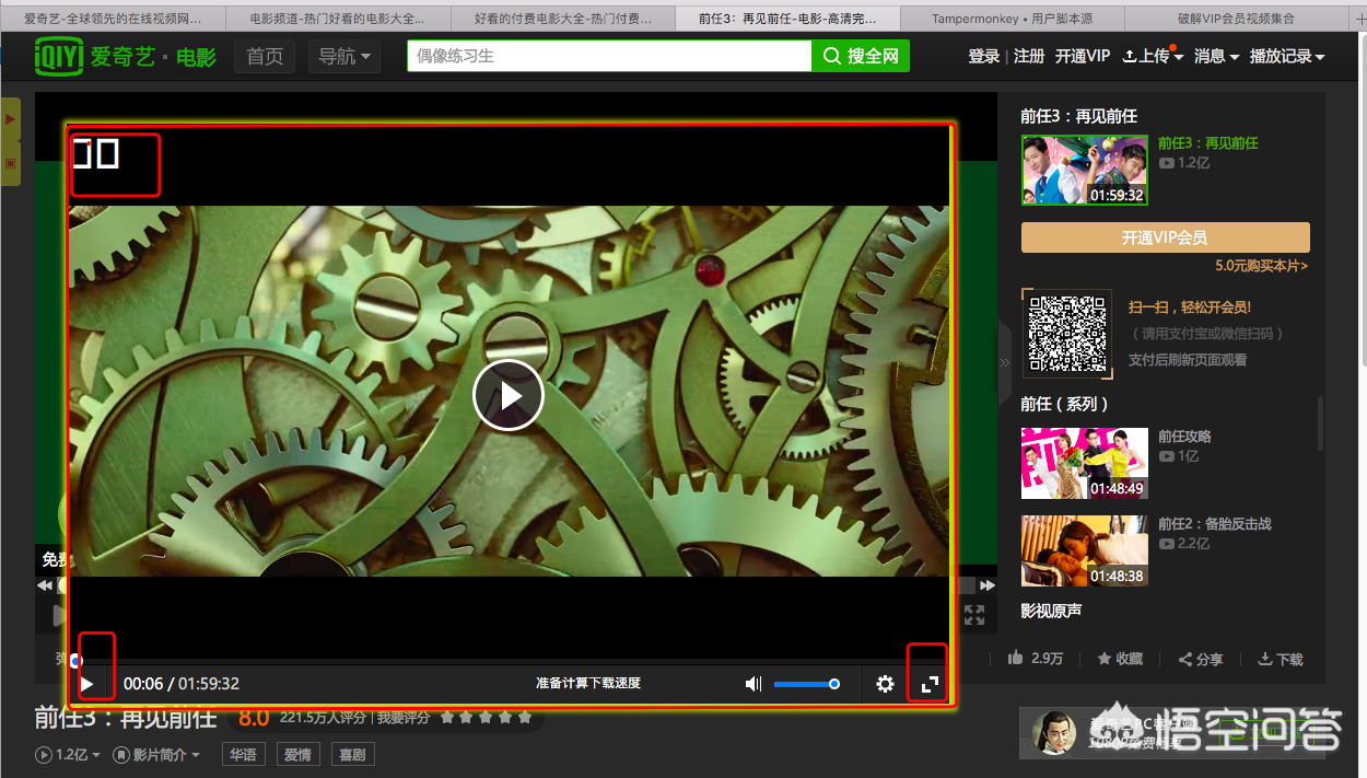 6.即可看到解析后的VIP视频,可以完整播放。点击右下角最大屏,完美享受吧!