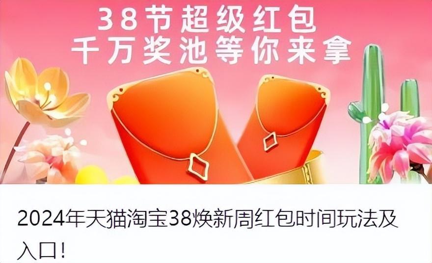 2024年淘宝妇女节活动主会场已经上线了,小伙伴们参加了第一天的红包活动了吗?首发是必中的,虽然金额有点小,但是我们坚持到3月8日每天都领取,累计下来还是不错的金额,淘宝超级红包---每天可抽,最高8888元,红包预告--3月1日20点,拼手气抢5元红包,一张图看懂超级红包的玩法。