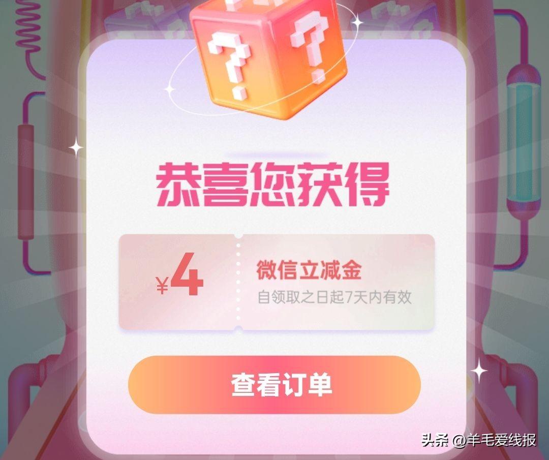 亲测3元立减金,中行支付1元抽盲盒,保底3元