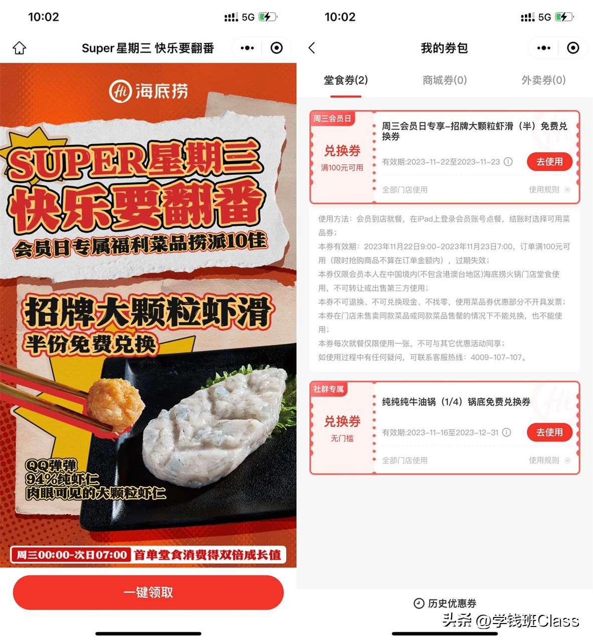微信打开地址->直接领取即可,限11月22日可用->刚好要吃海底捞的先去领一手!