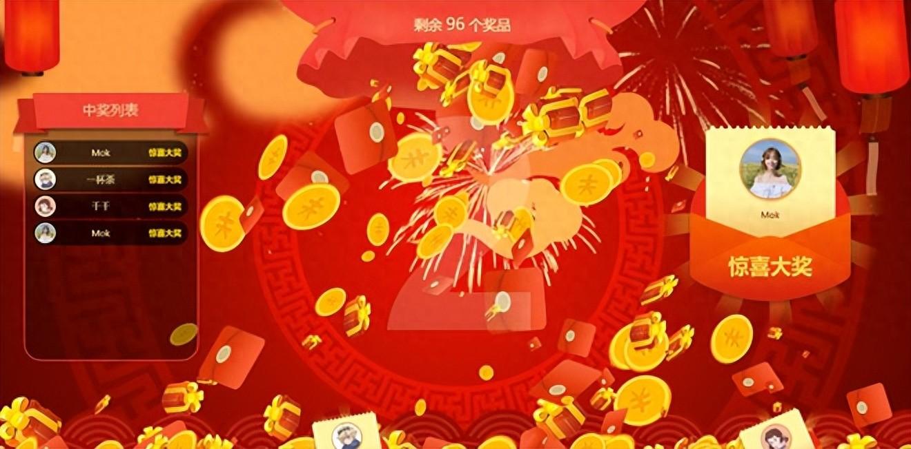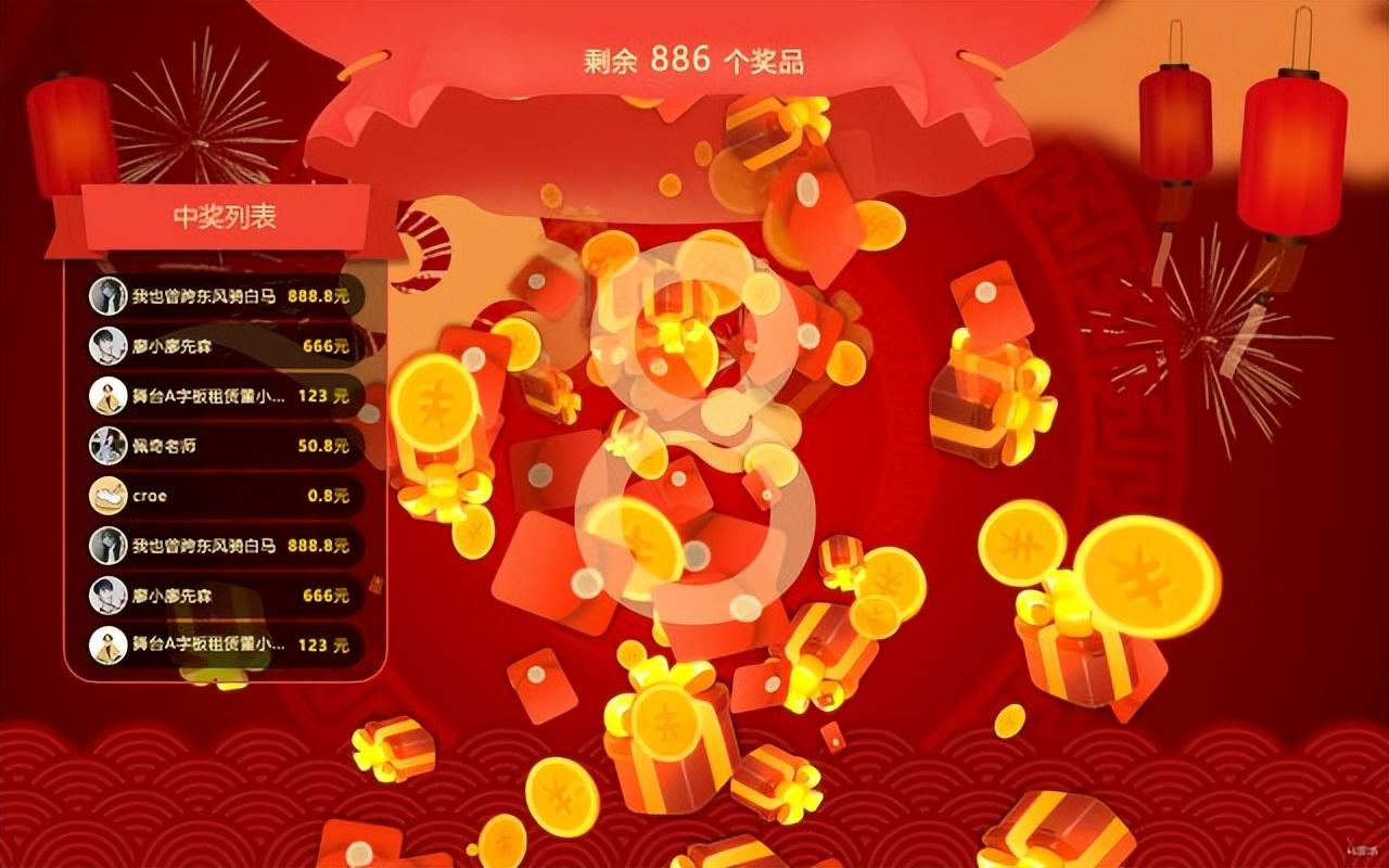 第一点是因为红包雨拥有很强的参与性和互动性,在红包雨抽奖的过程中,用户需要尽快地点击屏幕上不断掉落的红包,才能抢到里面的现金奖励。这种互动方式让用户充分投入到活动中,极大地提高了用户的参与度和粘性。