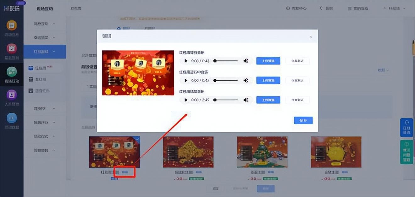 - 进入互动功能设置,选择“红包雨”进行相关设置