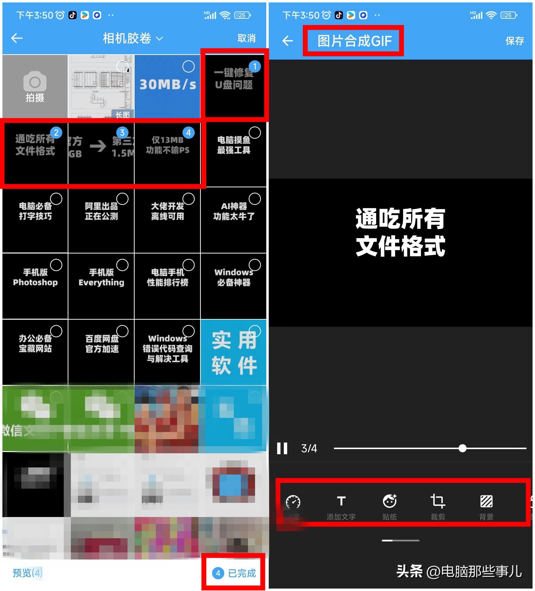 5、 图片转gif也很简单, 导入多张图片后,即可生成gif。可以随意的添加文字,剪裁等等。