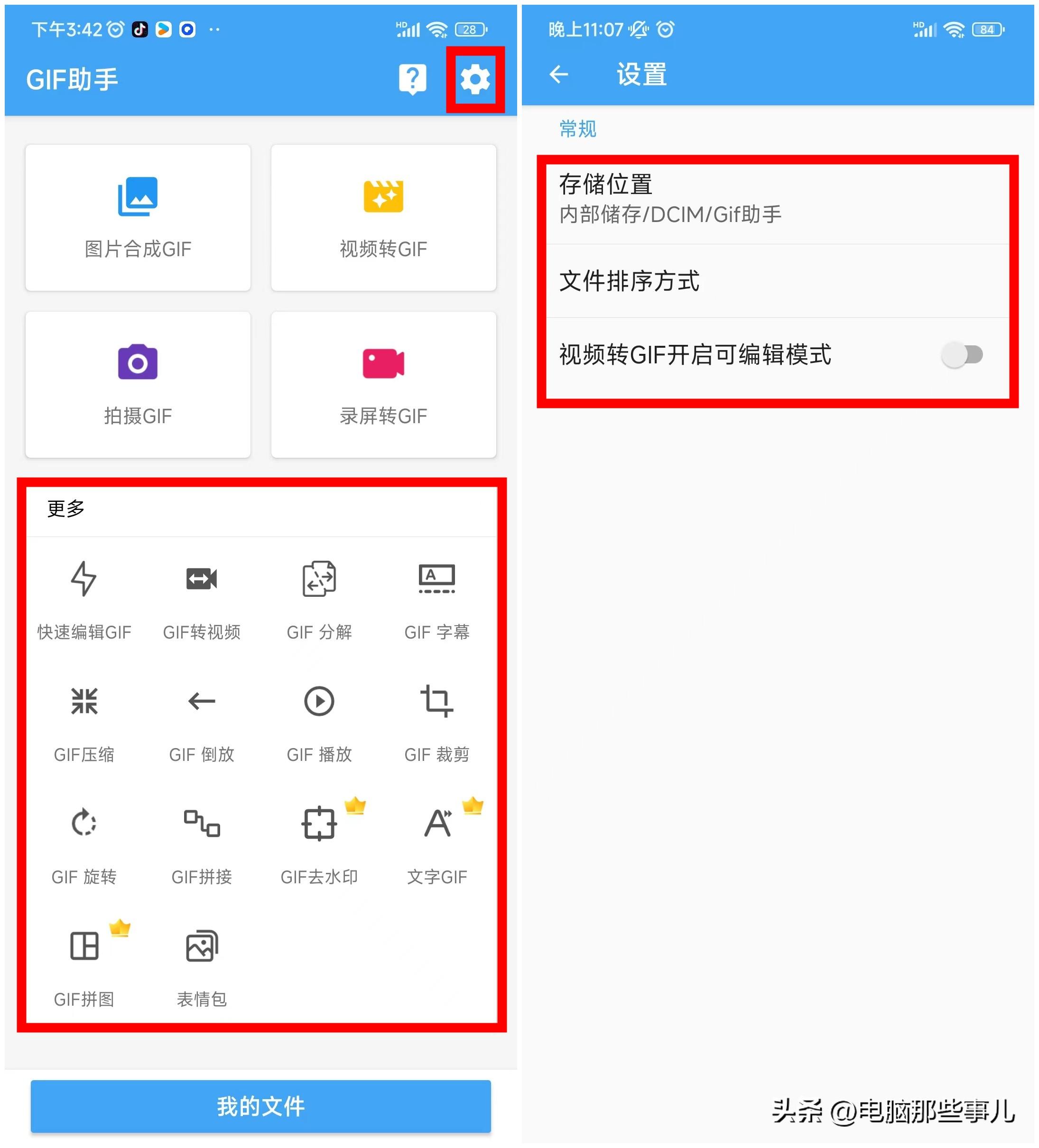 1、 安装后,打开可以看到软支持非常多的功能,比如图片合成gif、视频转gif、gif压缩等等,数一数近20种相关功能,你能用得上的,这几乎都有。右上角设置里,可以设置处理好的图片的存储位置等信息。