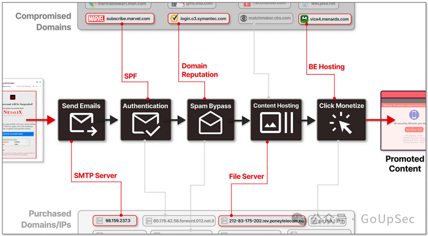 SubdoMailing劫持域名发送垃圾邮件的组合策略 来源:Guardio Labs