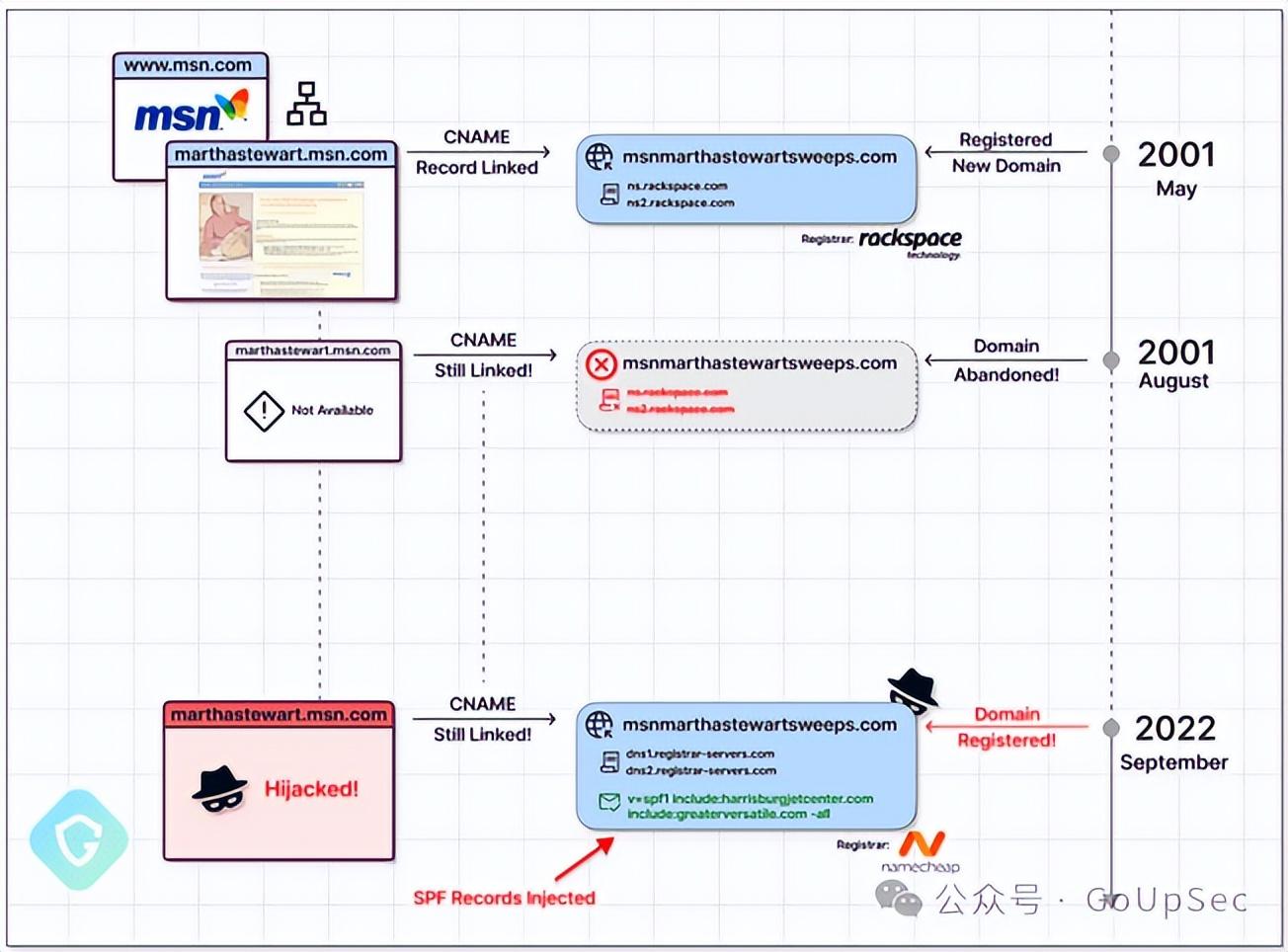 对信誉良好的企业的域名和子域名,SubdoMailing活动主要通过CNAME攻击和SPF记录利用这两种方法来实施域名劫持。