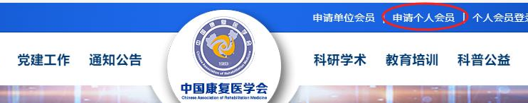 1、进入中国康复医学会官网www.carm.org.cn 点击官网首页右上角【申请个人会员】进入会员系统。