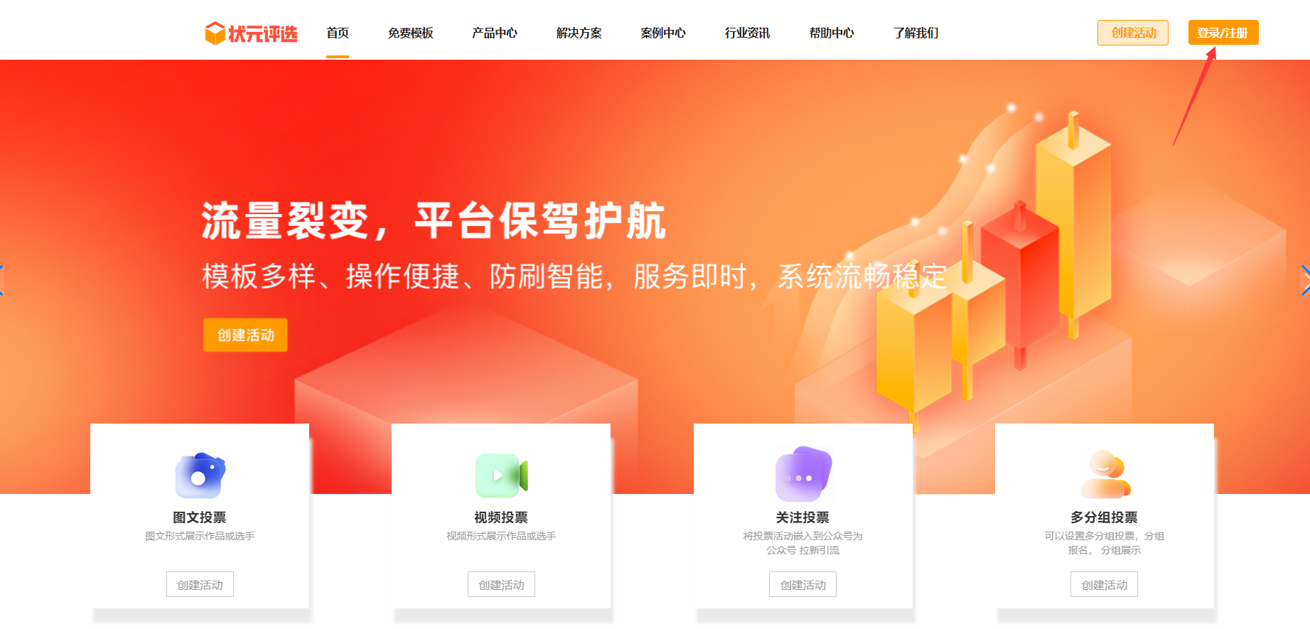 第一步,在电脑任意浏览器里面,输入状元评选的网址www.zypx123.cn,进入到平台首页,完成账号的【注册登录】后,会自动跳转至活动后台,在【模板中心】里面,我们可以选择一个合适的模板样式。