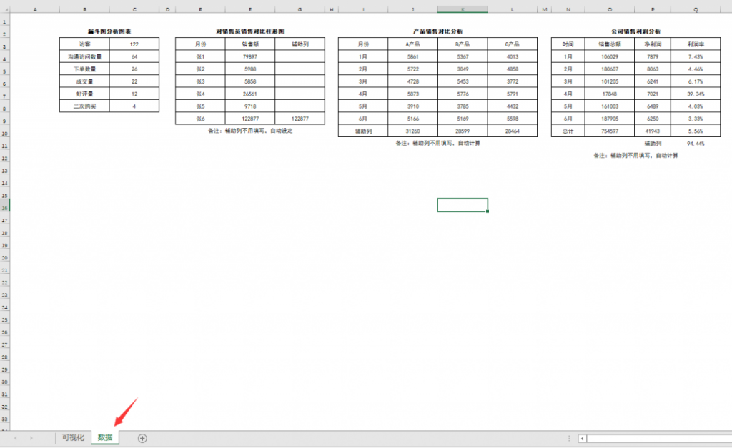 这个报表的图表都是自动生成的,咱们只需要在数据源工作表里填数据就行。