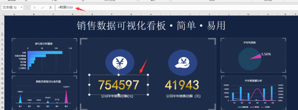 表格和文本框里的数据都是自动引用的,直接用工作表里的函数就能算出来,不用你手动操作。而且,这个报表里的图表都是动态的,能展示多个维度的数据,让你一眼就能看出销售情况。