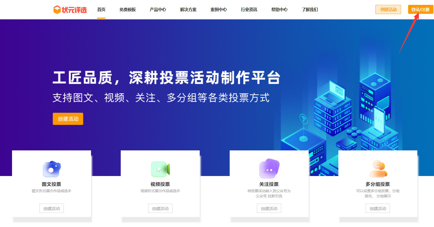 第二步,在首页上,输入手机号、验证码等信息,完成账号的注册登录。完成后,系统会自动跳转至活动后台,在【模板中心】当中,我们可以选择一个合适的模板样式。