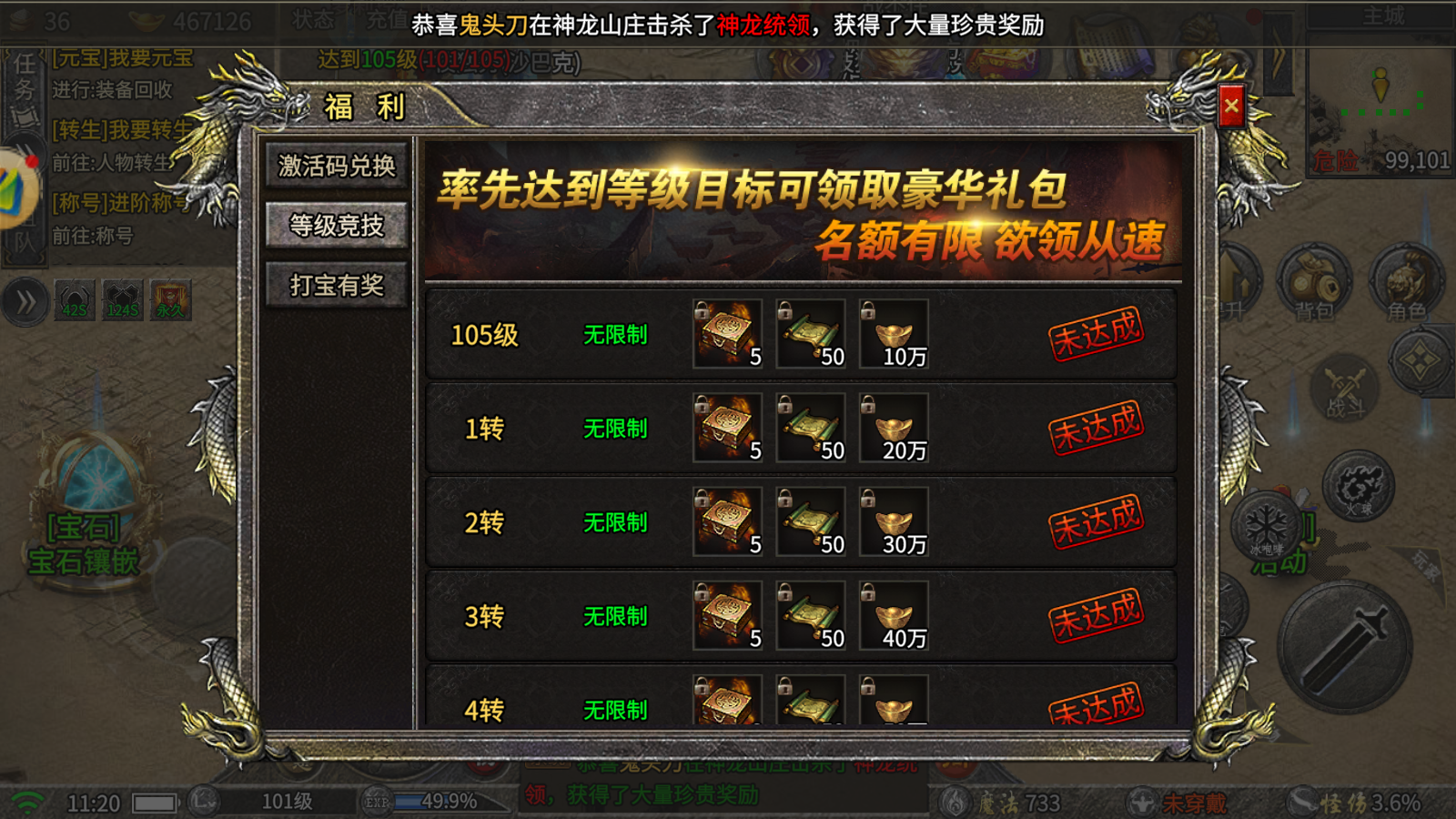然而这款手游的福利是给的非常充足的,你只需要生生级打打怪就可以获得大量元宝!