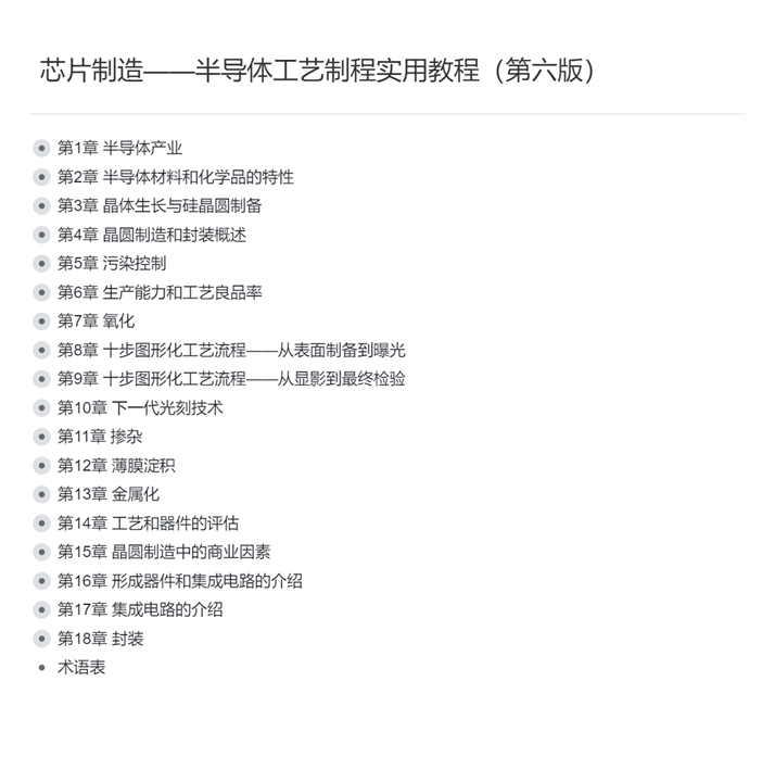 最后选了《芯片制造——半导体工艺制程实用教程》来阅读