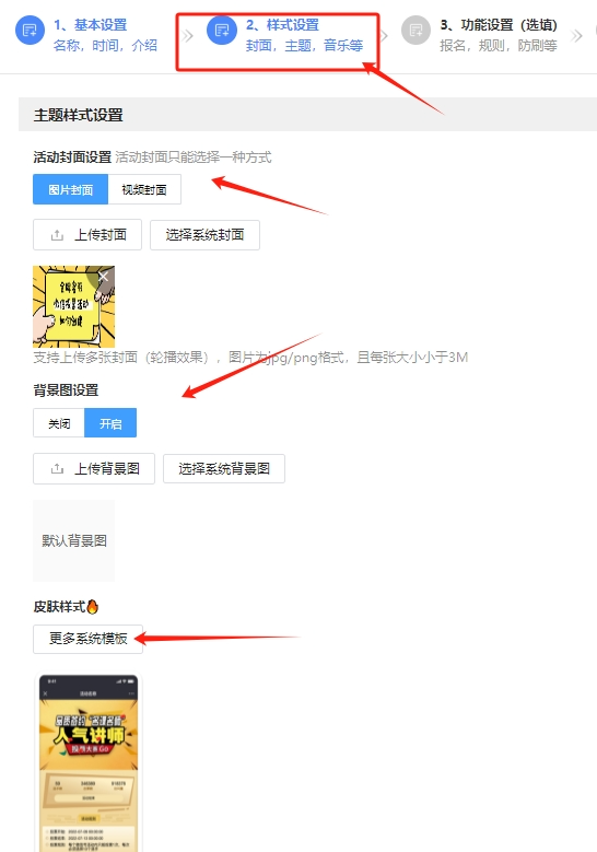 3.选择一个你喜欢的活动封面,平台还有免费皮肤样式可供选择。
