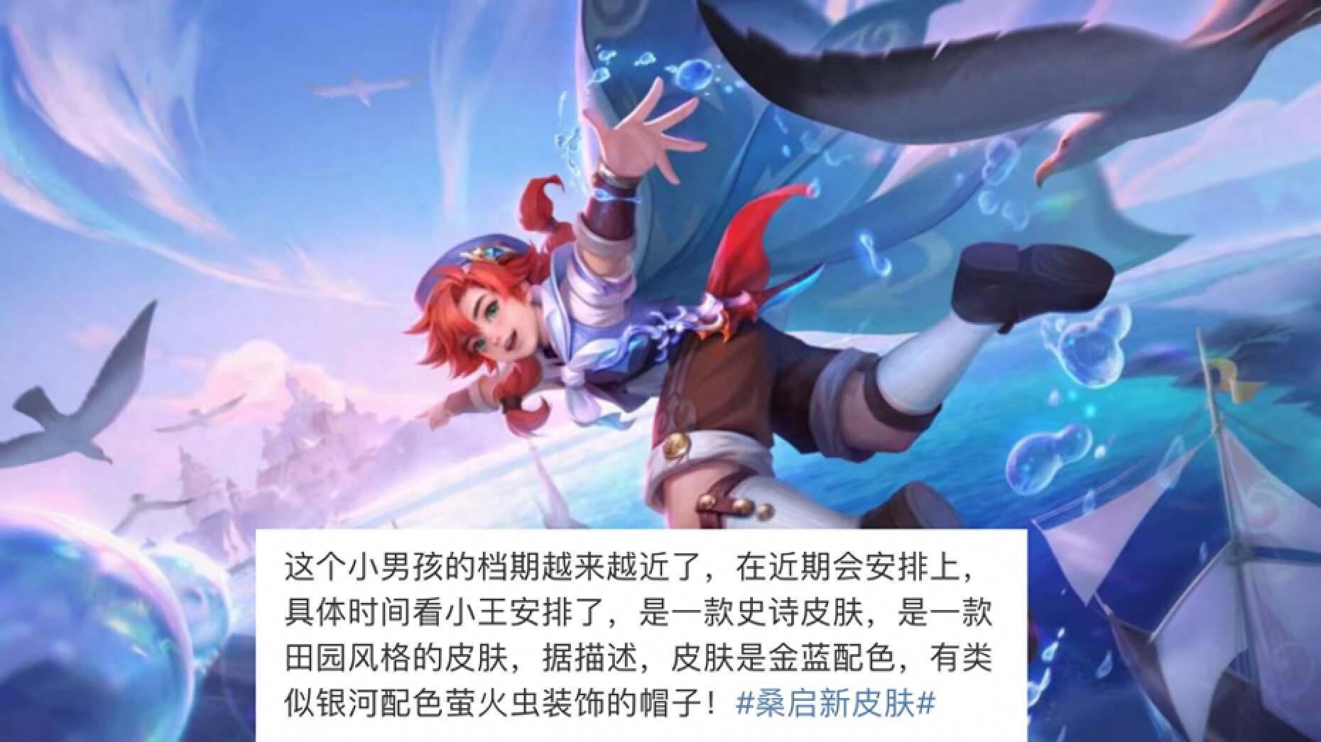 还有桑启,桑启的新皮肤是一款史诗,根据网友爆料,这款皮肤是田园风格,皮肤是金蓝配色,有类似银河搭配萤火虫装饰的帽子。