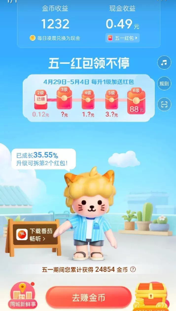 4月29日,头条推出了《五一红包领不停》的活动,刚开始的时候收集了20000多个金币就打开了第一个红包,[奋斗][奋斗][奋斗]也收益了0.12元。